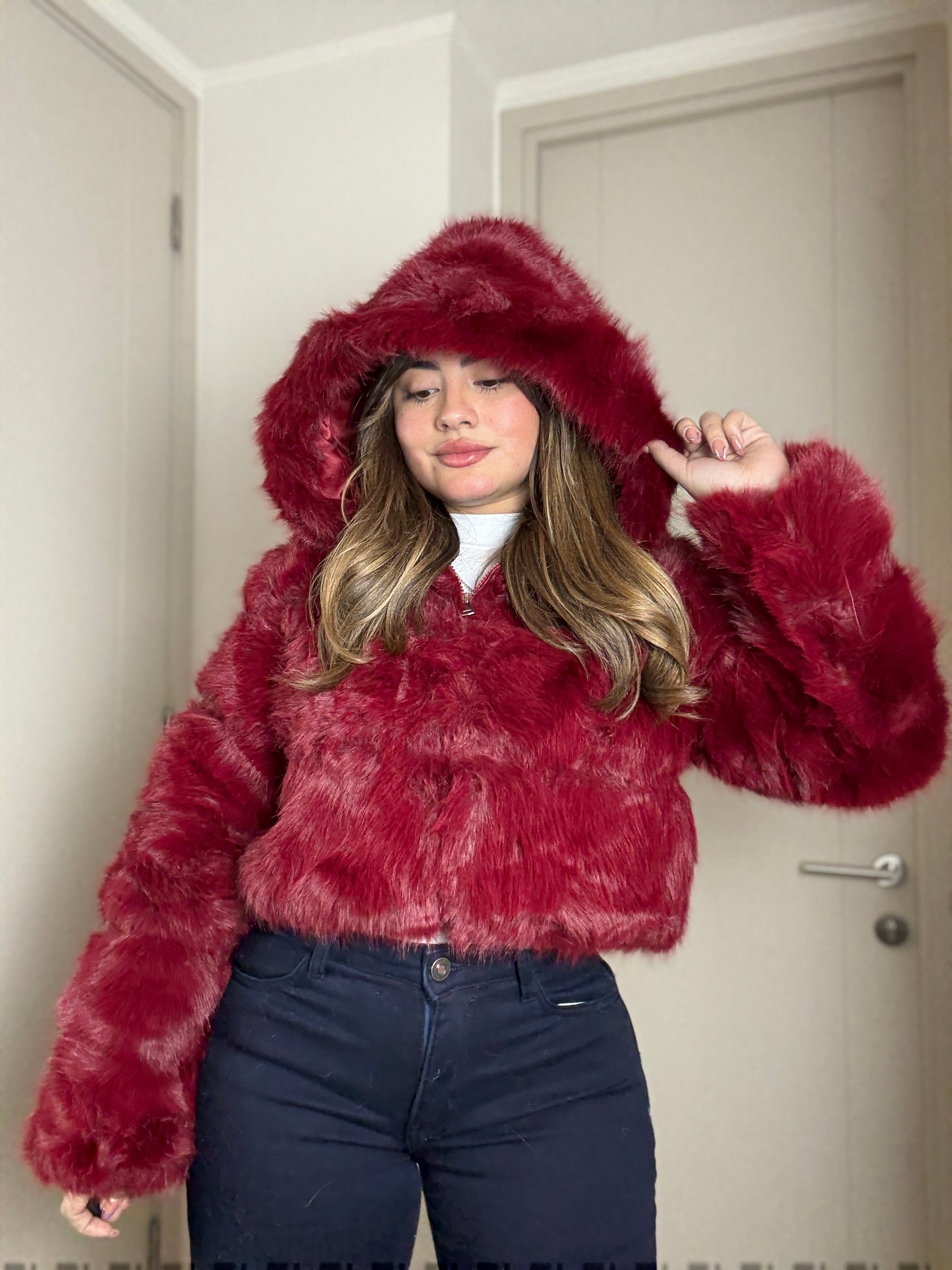 Chaqueta de Ecocuero con pelos, viene con gorro y cierre