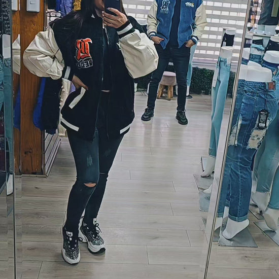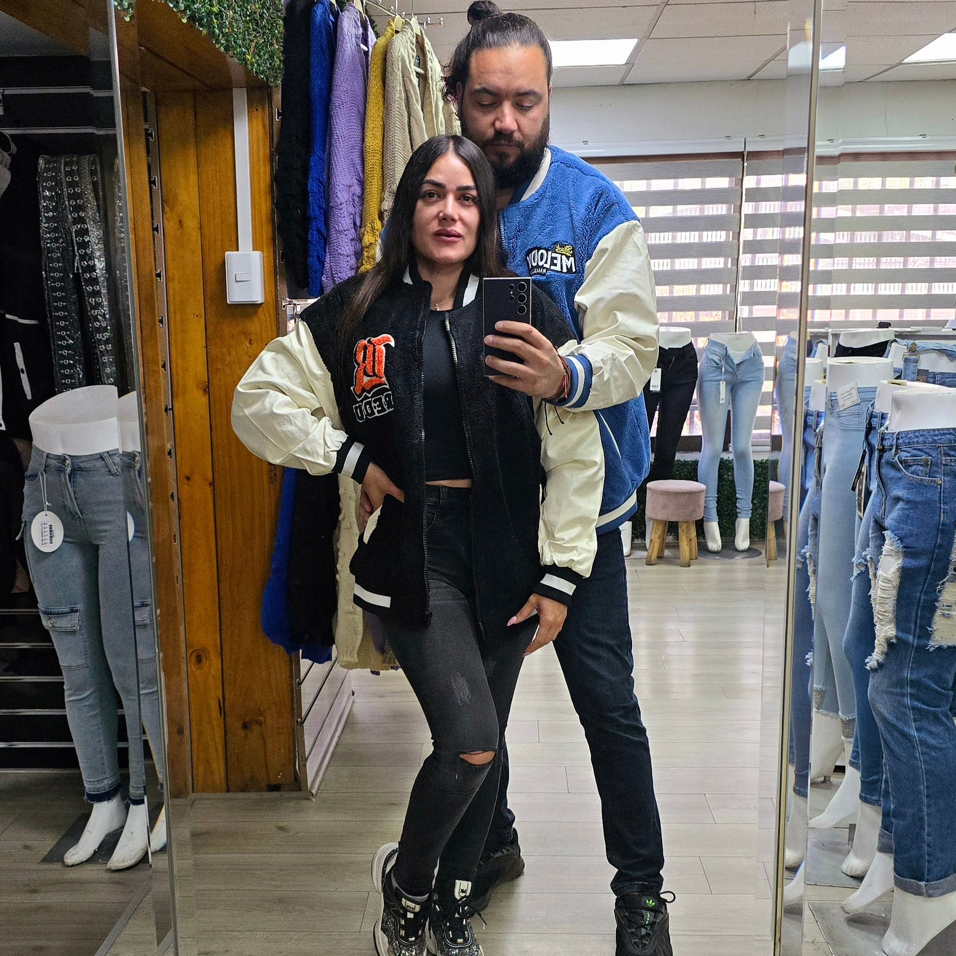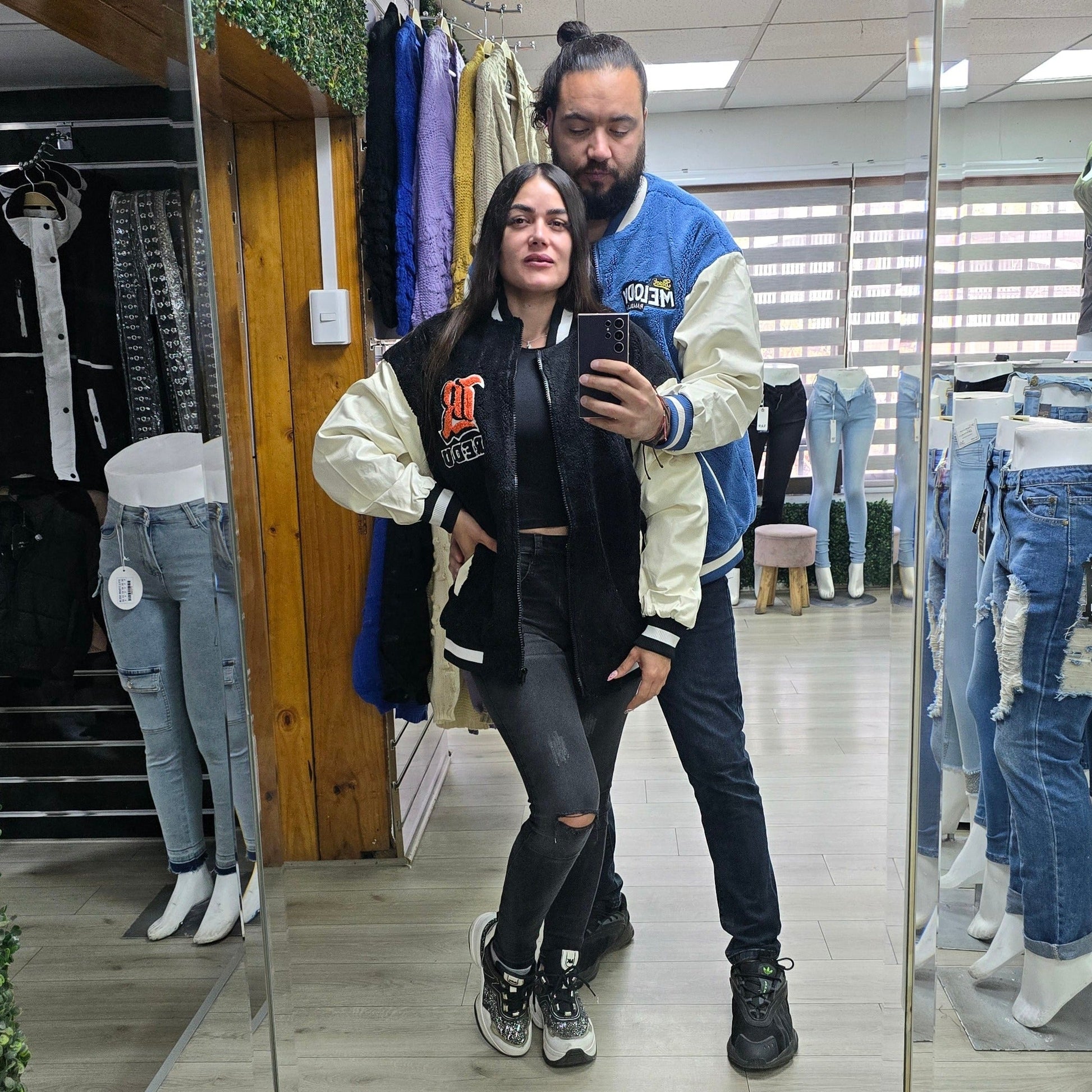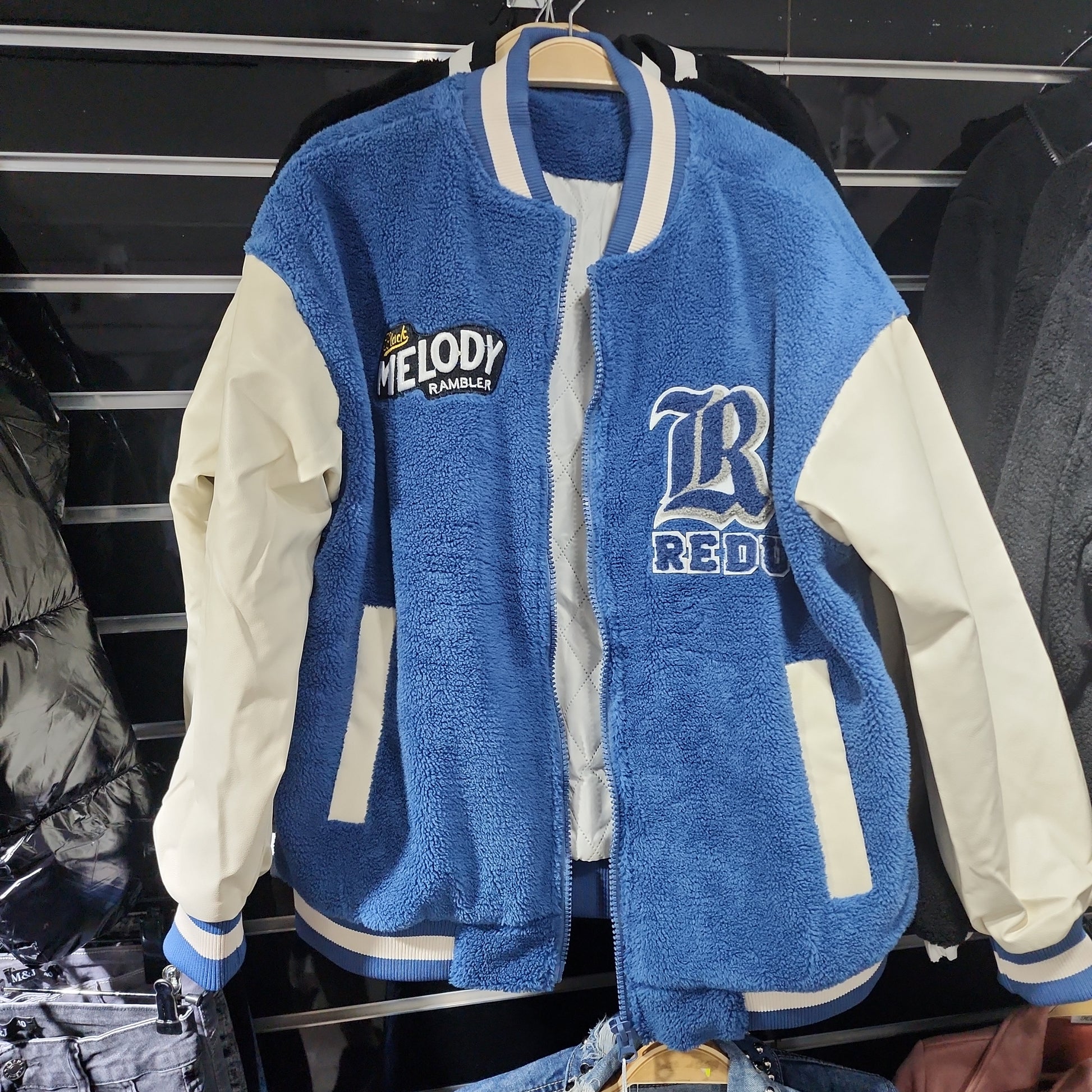 Chaqueta tipo UNIVERSITARIA, con mangas en ecocuero , gruesa, forrada en su interior, de tela peluda
