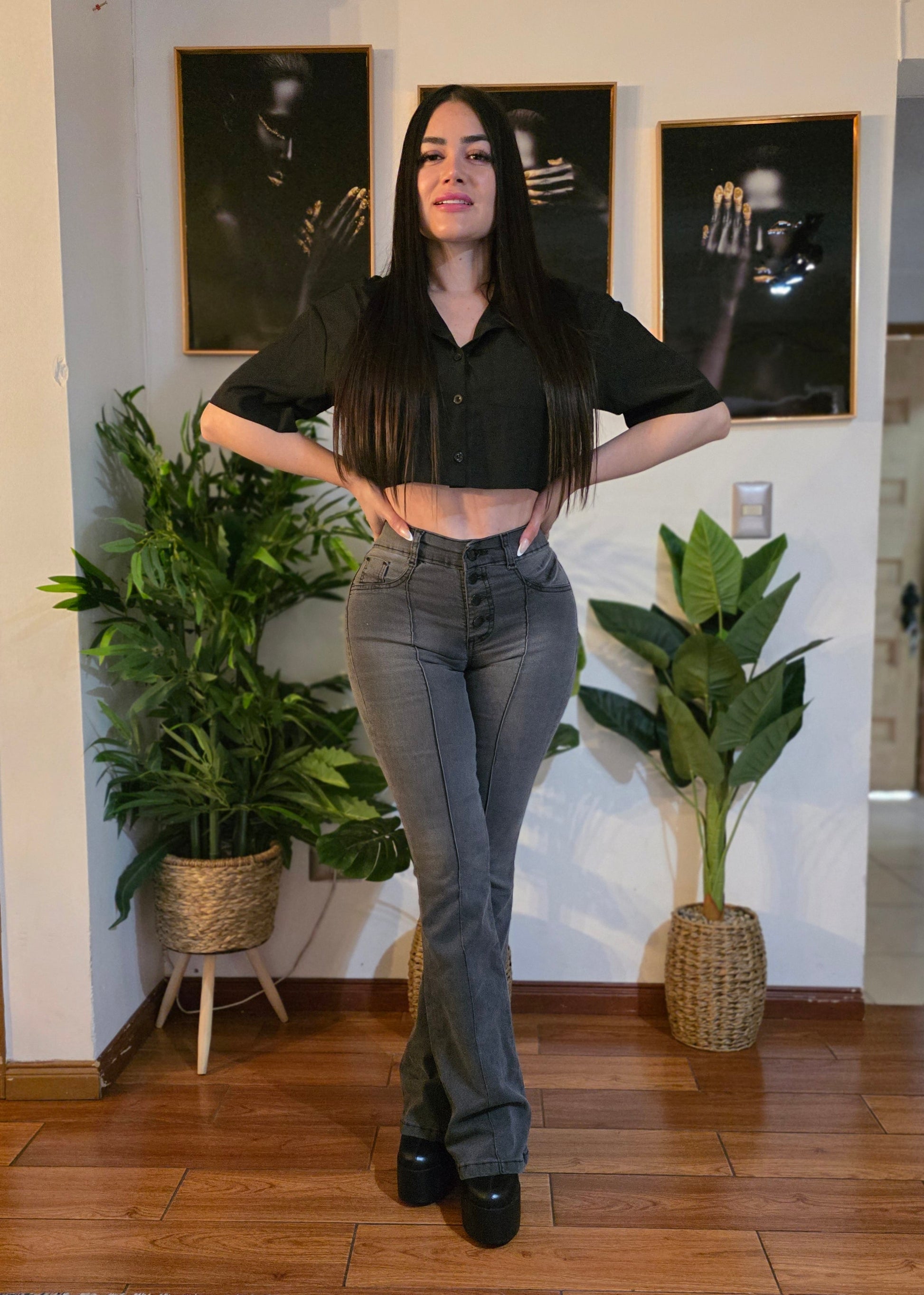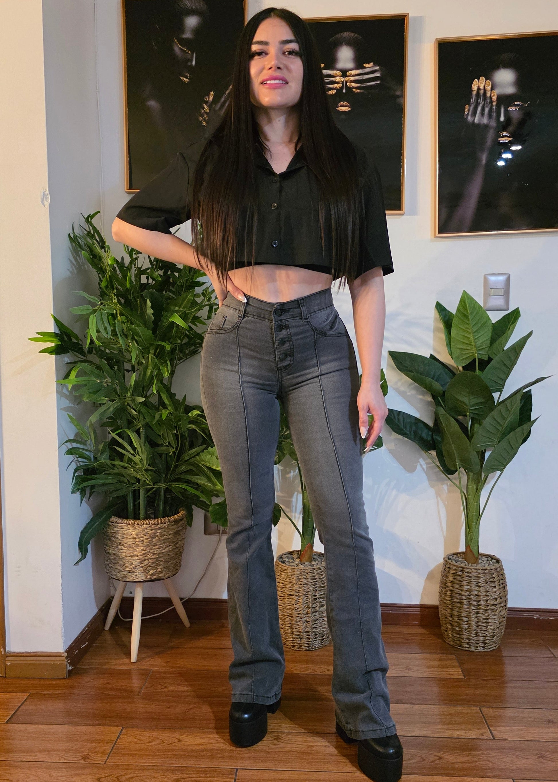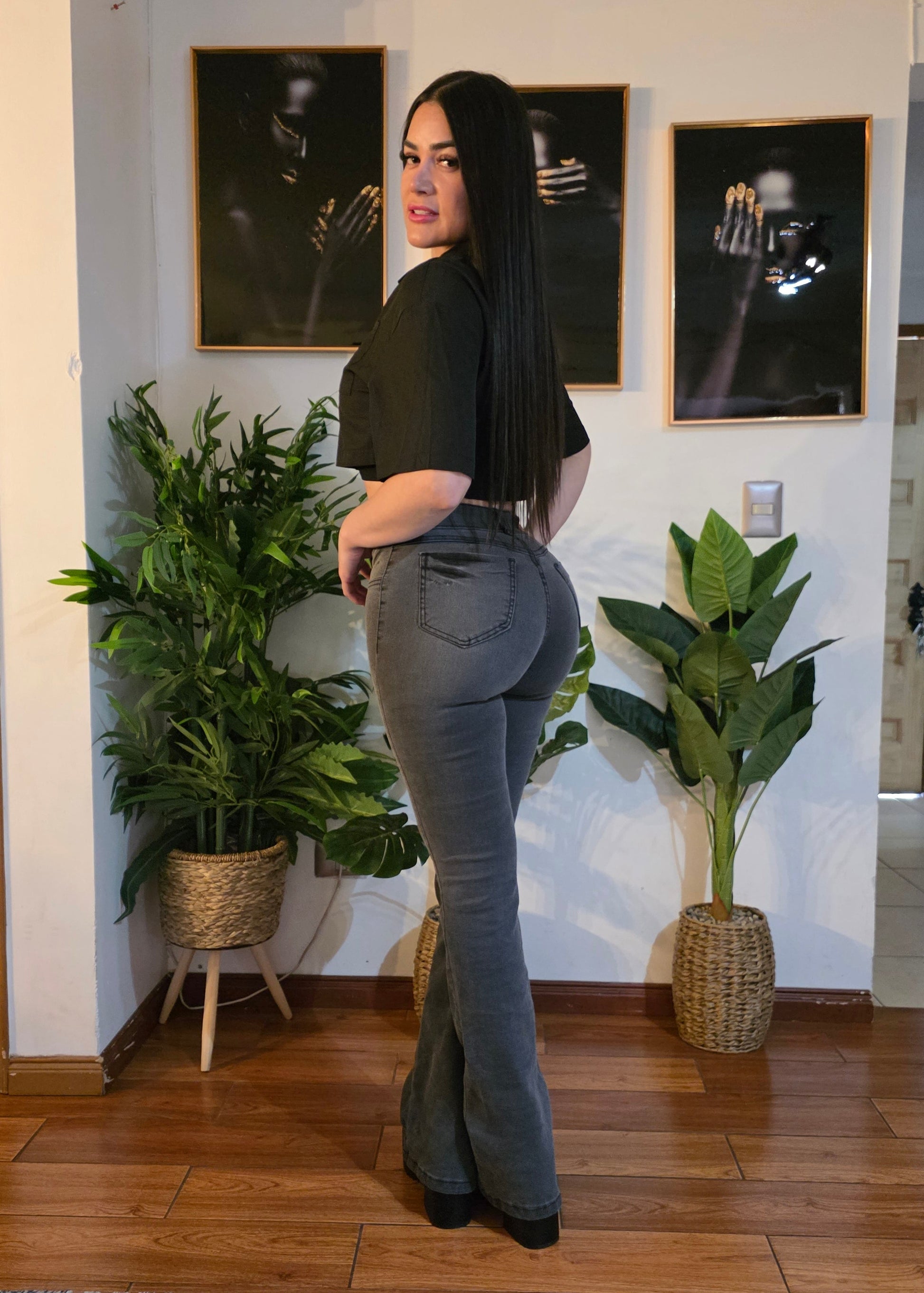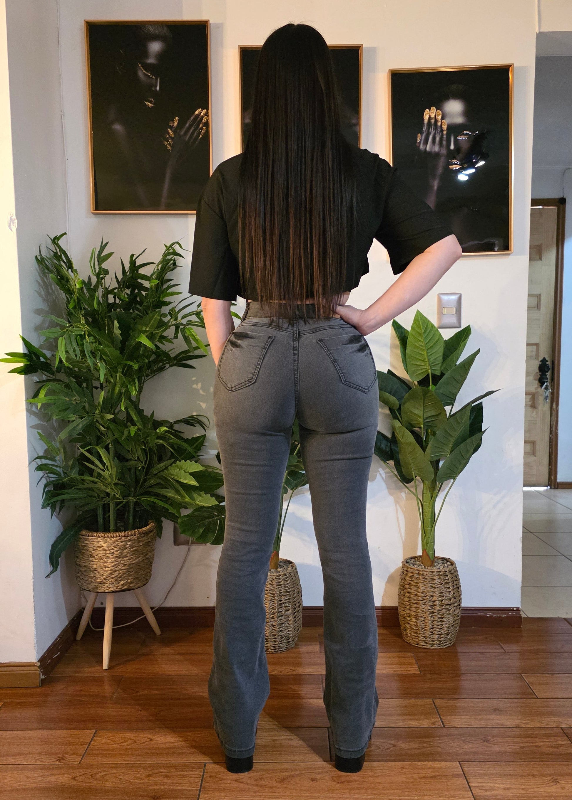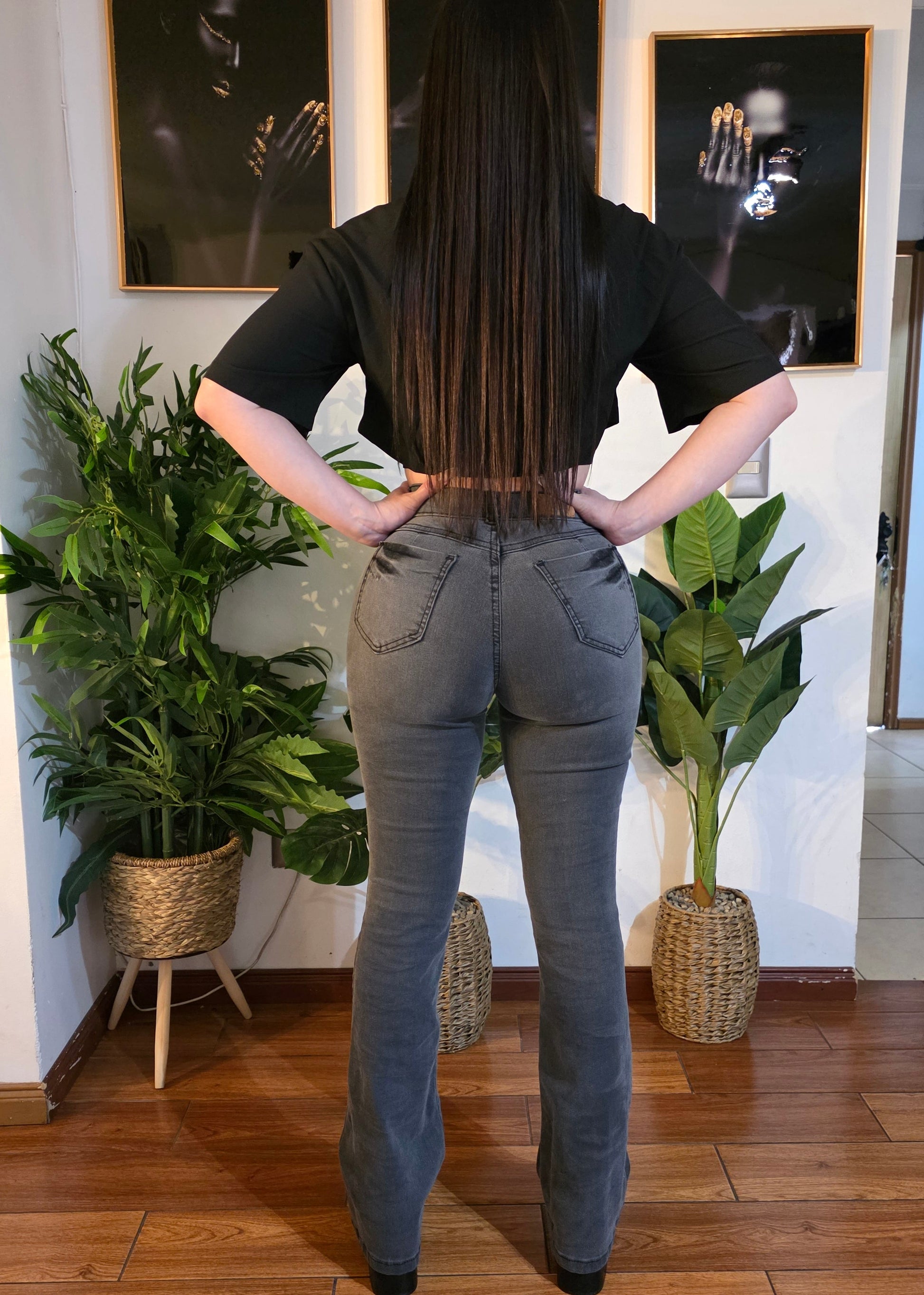 Jeans Flare, Color Gris, Full Elasticado, Con un Push Up Increible.
