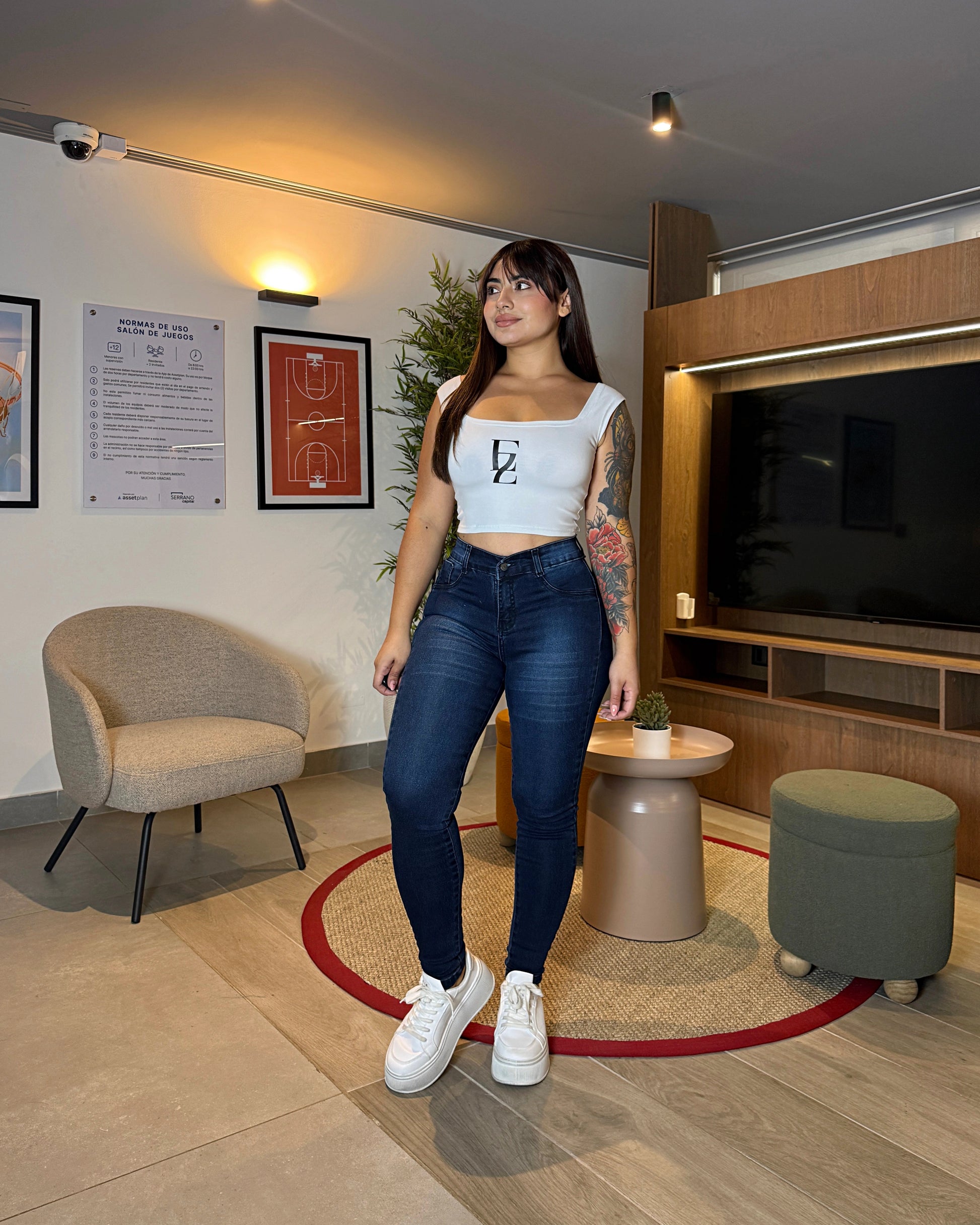 Sus bolsillos no son rectos, como todos los demas, son ovalados, para que generen mas volumen visual
