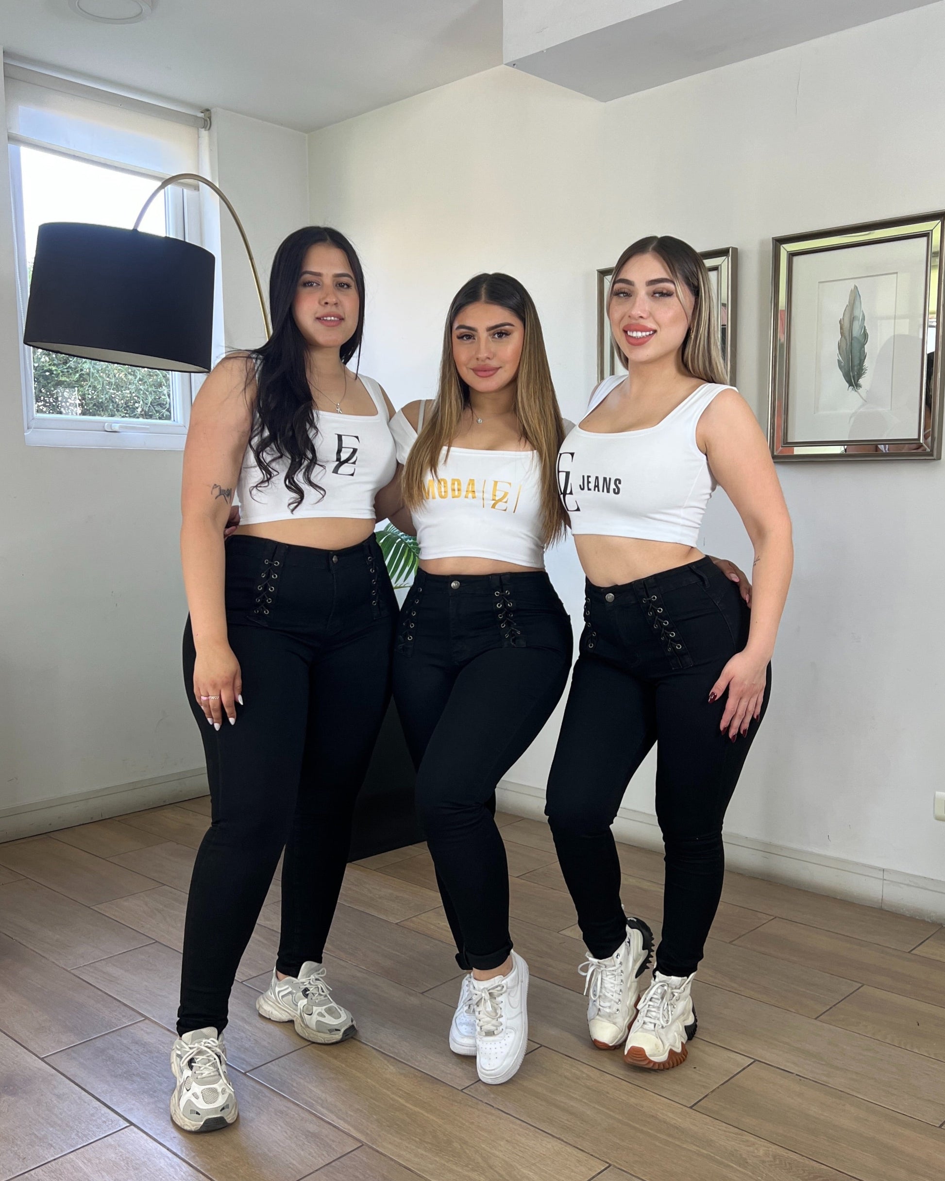 Jeans TRENZADO, tiro alto, con pinza push up estilo nacional, elasticados.