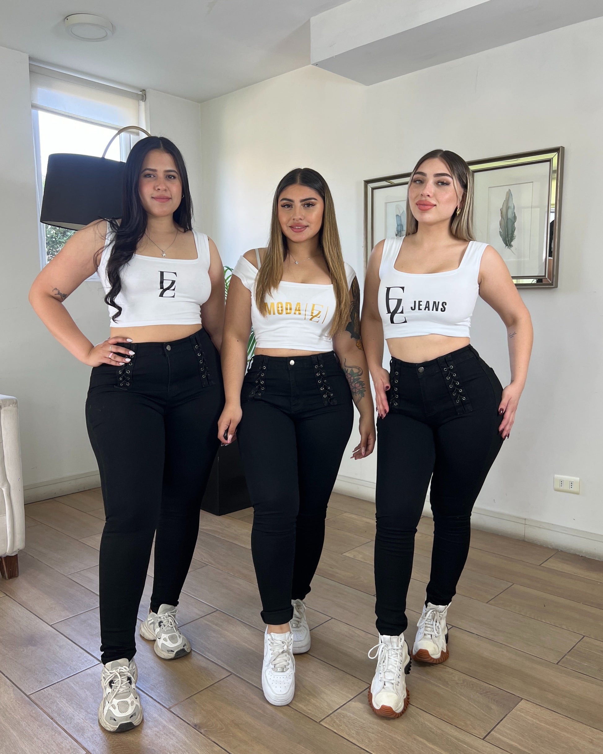 EZ5508 (G7) | Jeans Skinny Negro Trenzado Adelante | EZ