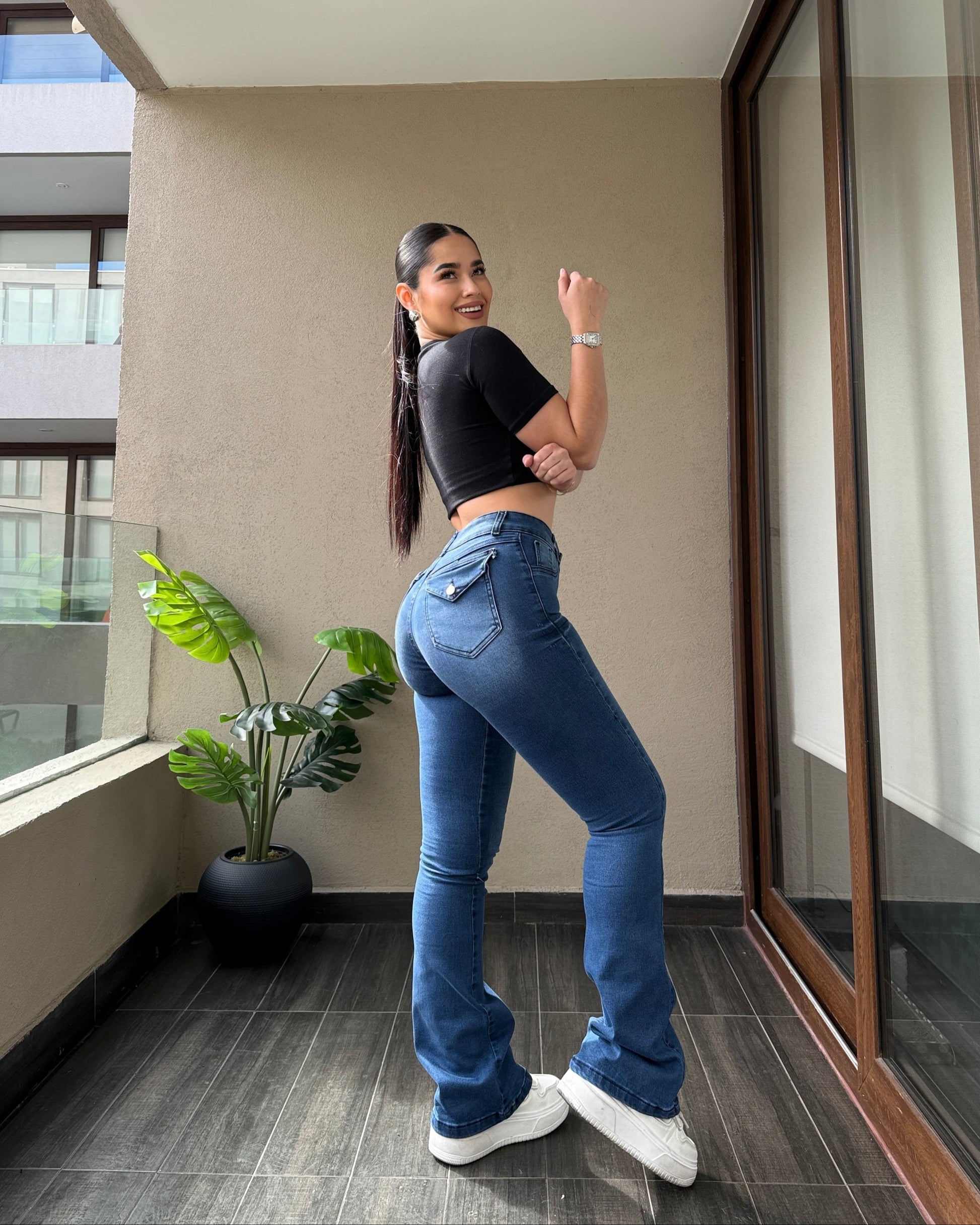 Jeans Flare, fabricado en Chile con tela premium, la tela es muy elasticada, lo cual hace que se ajuste perfecto a tu cuerpo de manera comoda, y tiene un push up, que te veras increible.