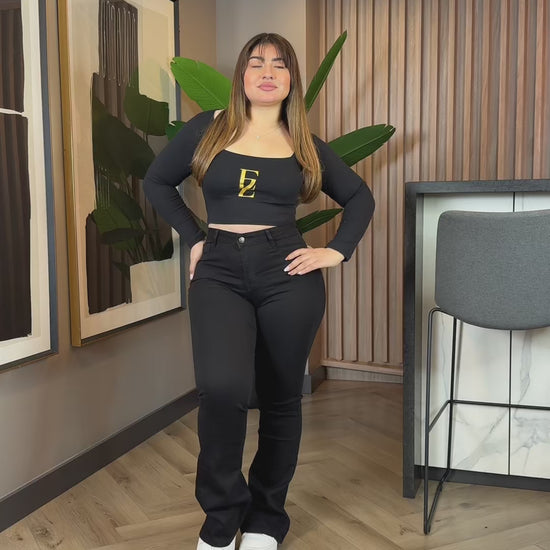 EZ5534 (J5) | Jeans Flare Negro Tapa | EZ