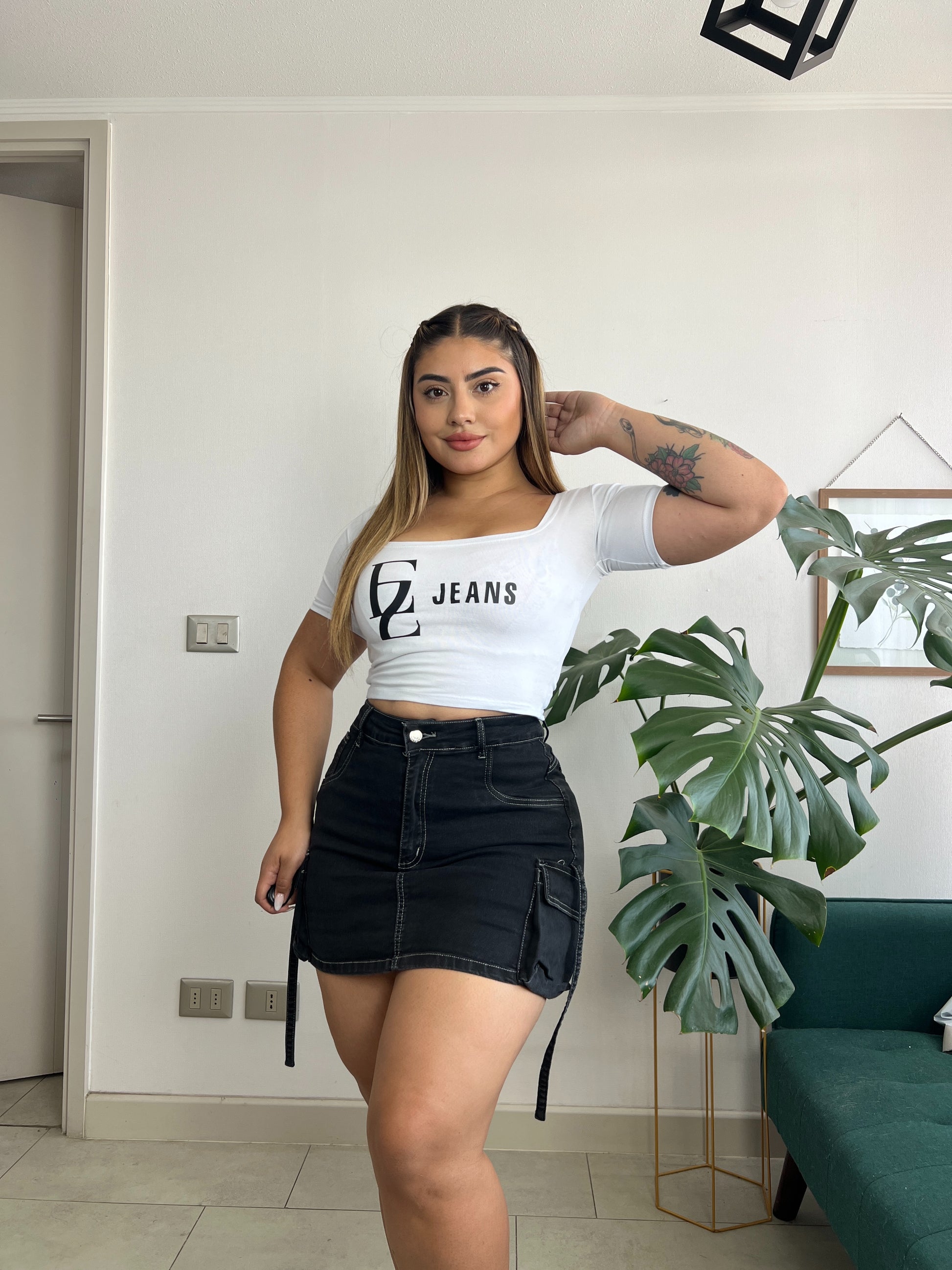 Modelo EZ05 (C7) | EZ Falda Short Cargo Negra Costura Blancas Nacional |