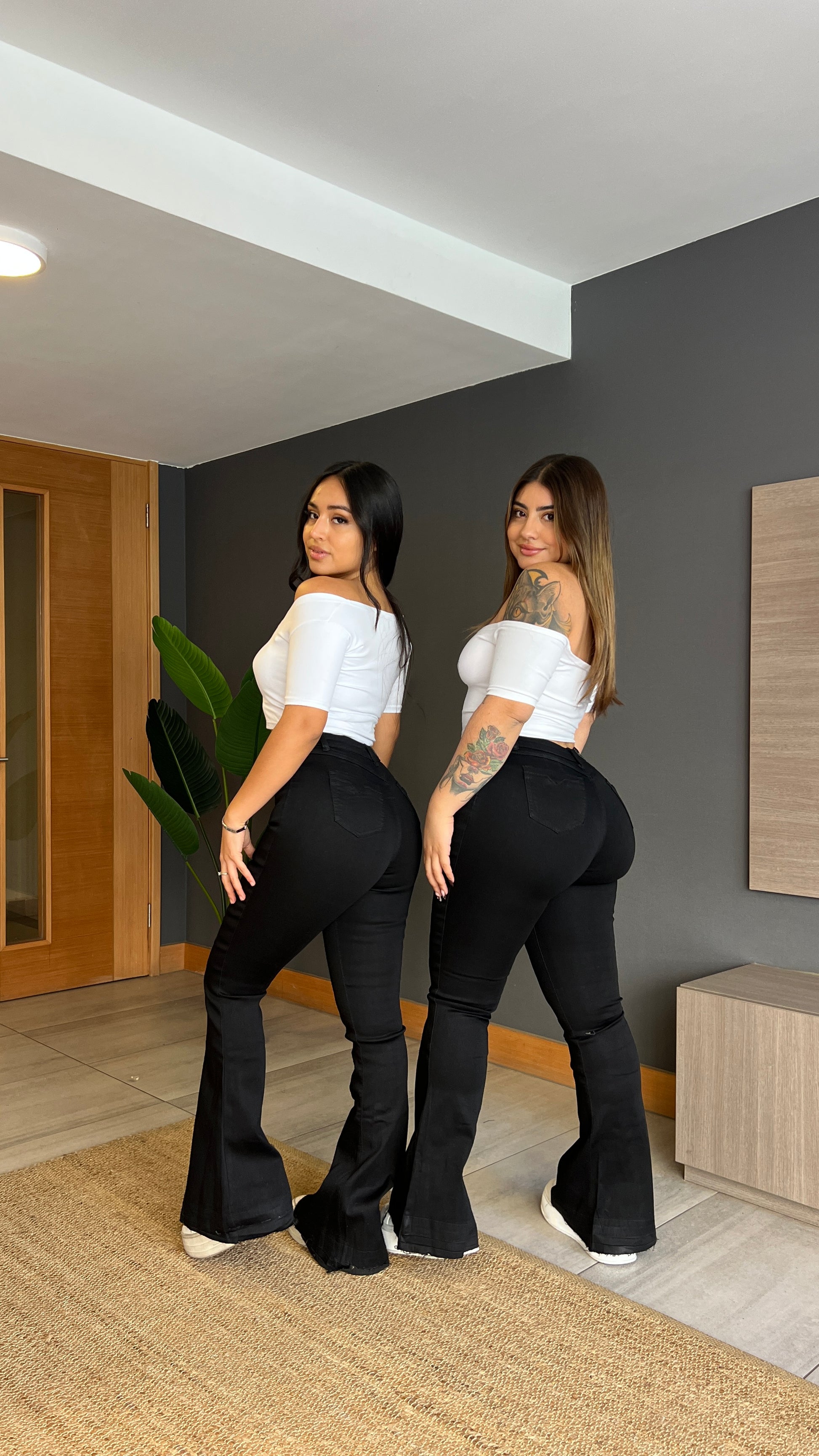 ¡Prepárate para un look poderoso y moderno con nuestro Jean Flare Negro! ✨😎