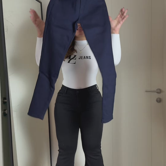 Jeans Azul Oscuro forrado en su interior con polar, es tiro alto, elasticado y full push up, Ideal para los dias de frio.
