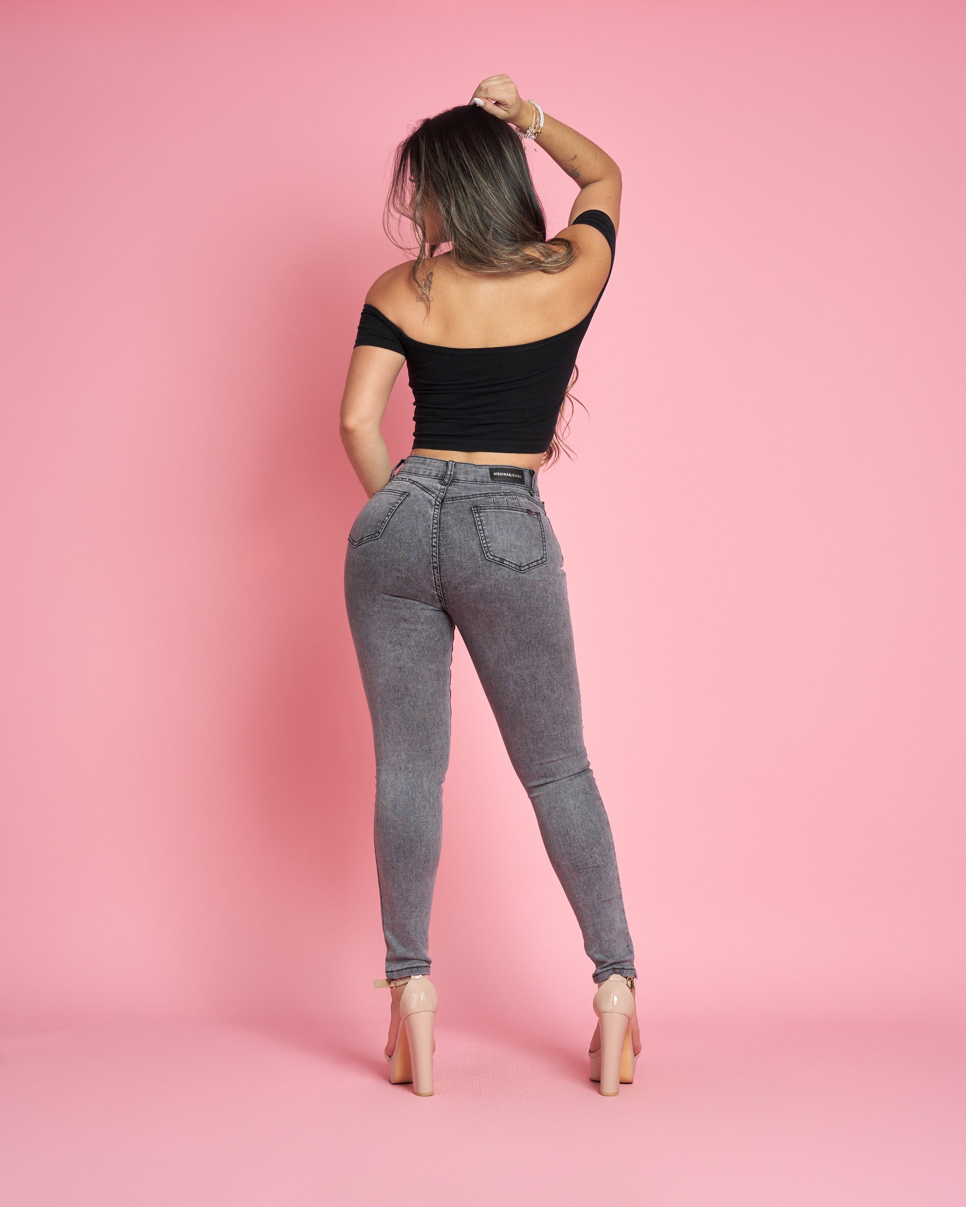 Modelo MB019-1 (G5) | Jeans Skinny Gris Brillos |Menina