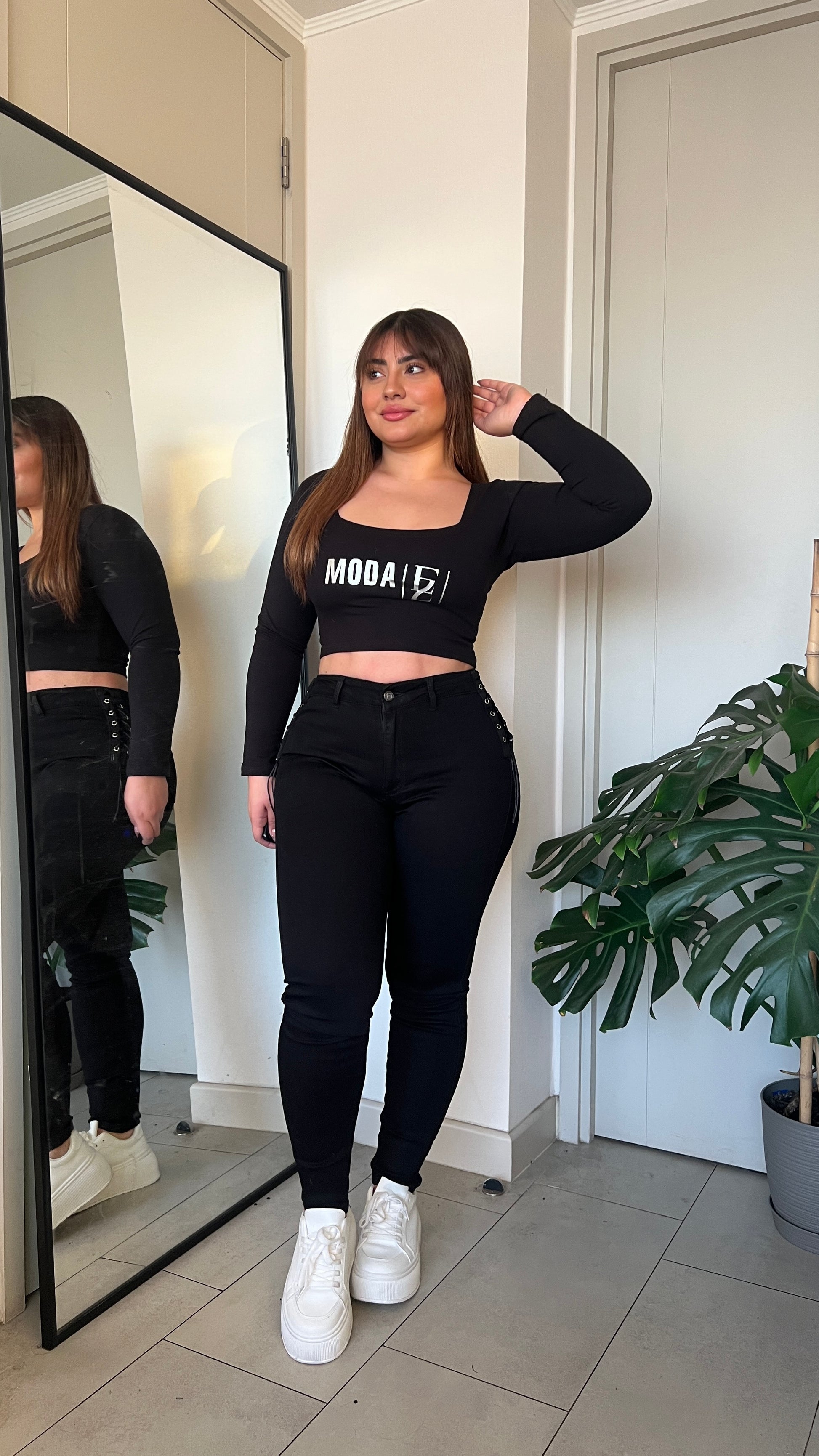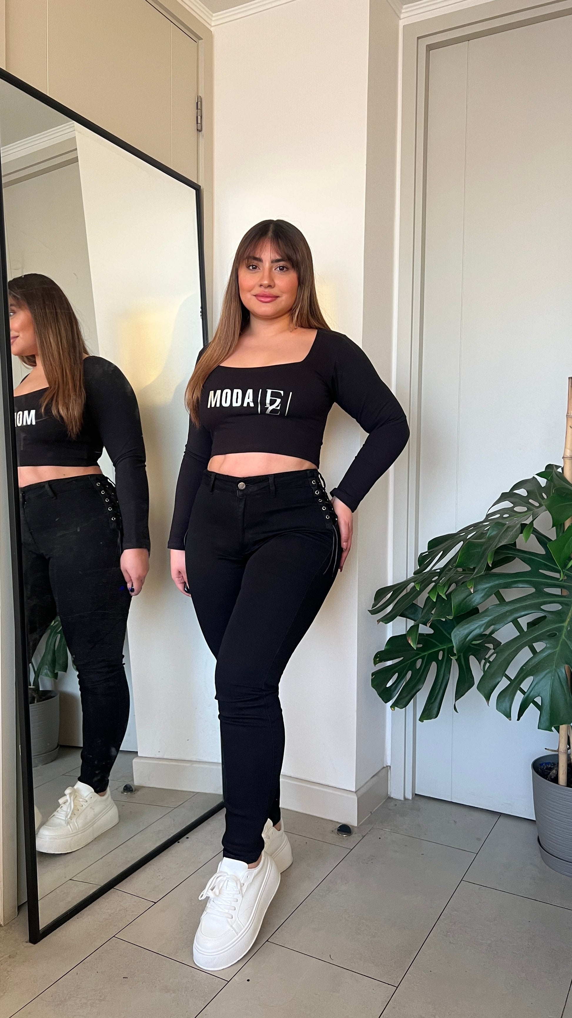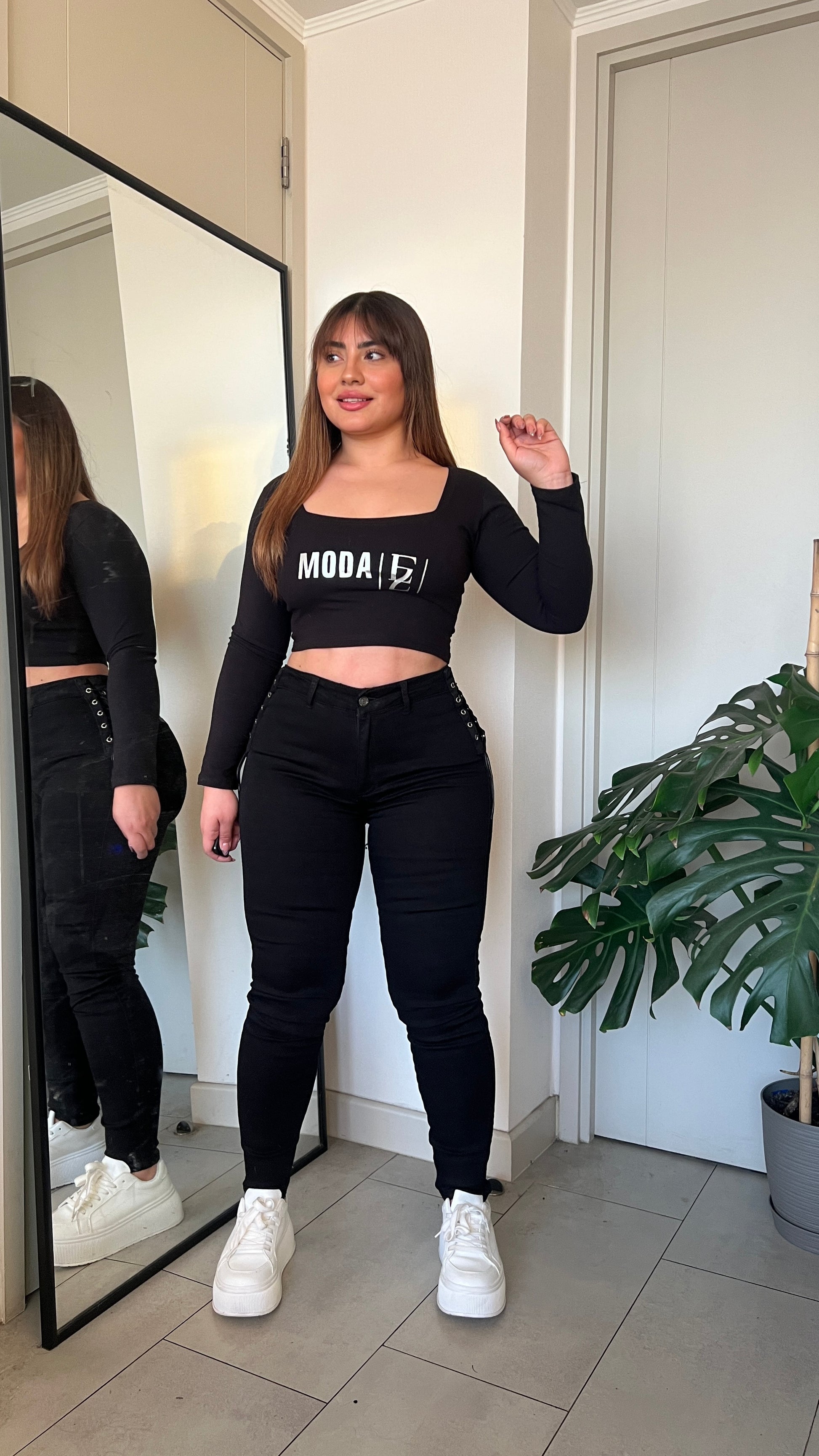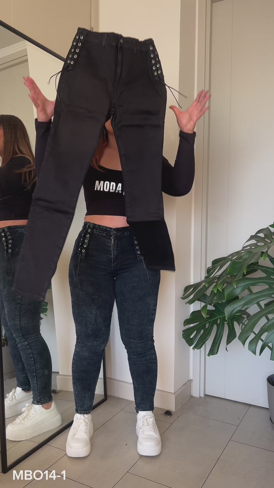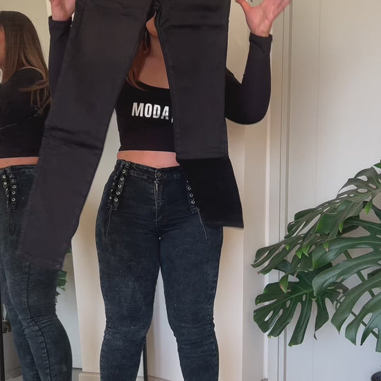 Jeans Skinny Trenzado en los costados, es tiro alto, elasticado, full push up.