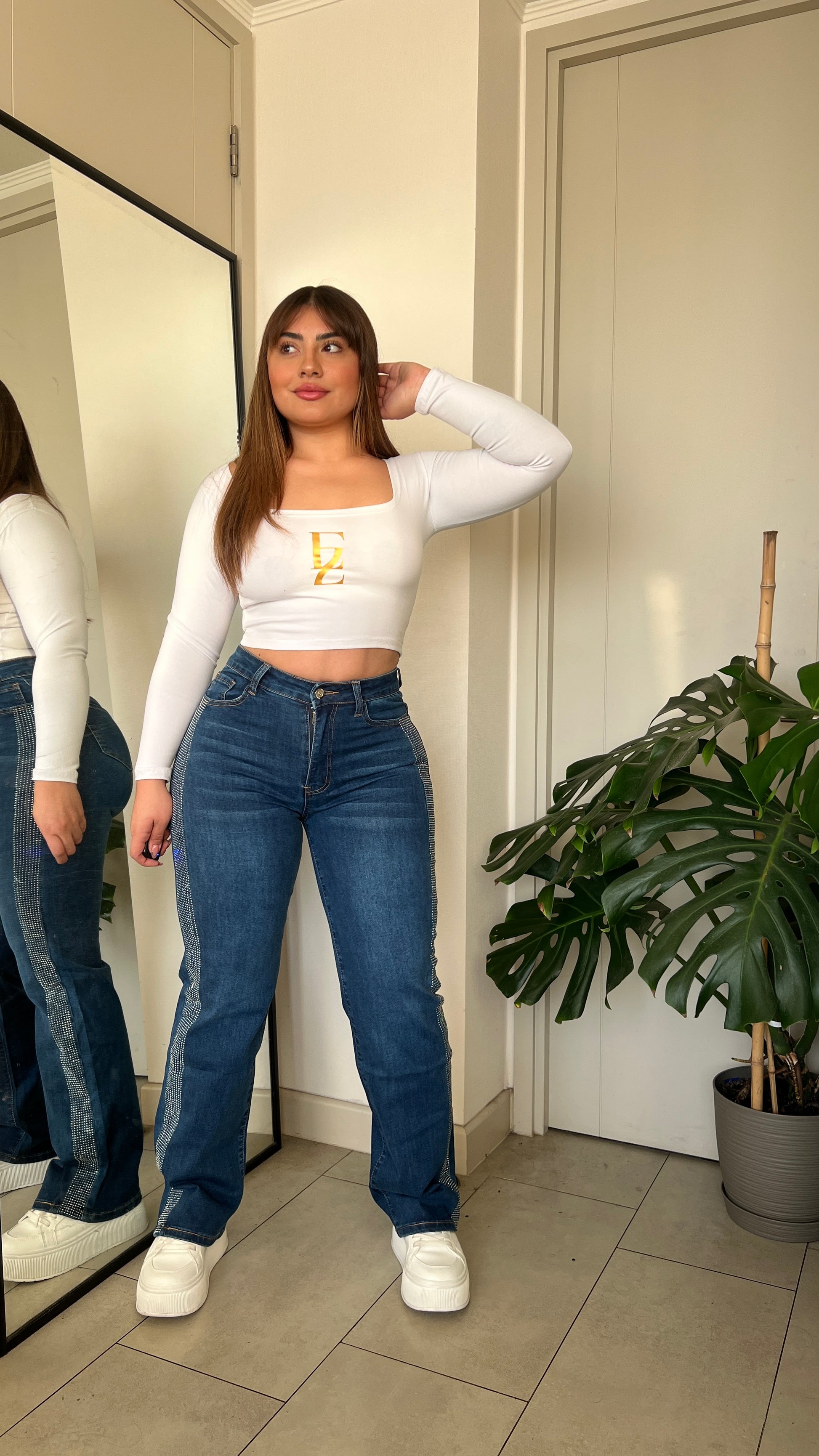 Jeans Wide Leg Azul Brillos | Modelo MB018 | Menina