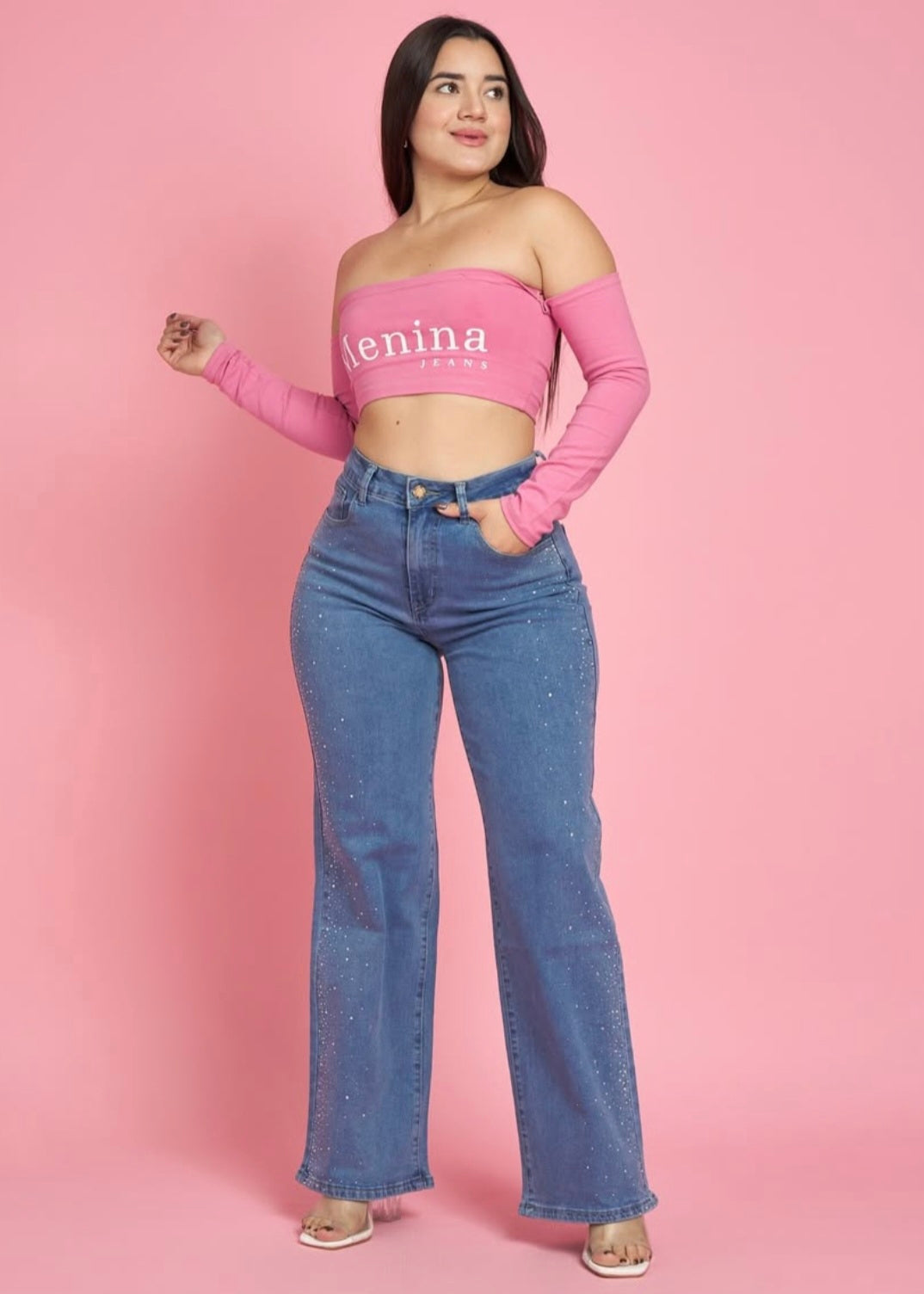Jeans Wide Leg Azul Claro Brillos | Modelo MB413 | Menina