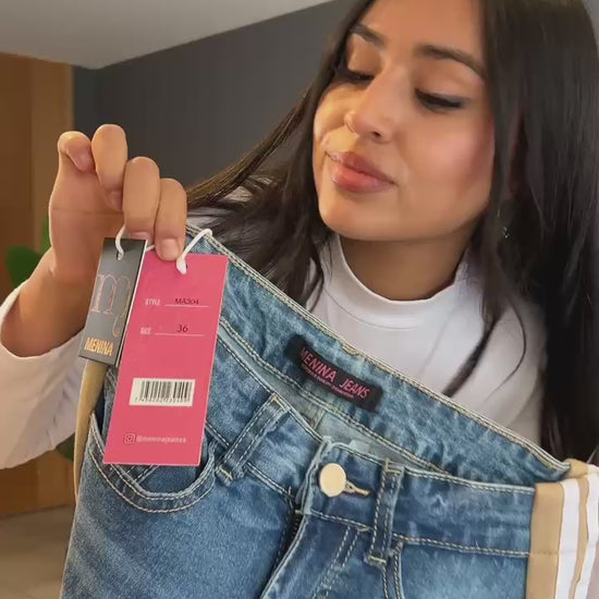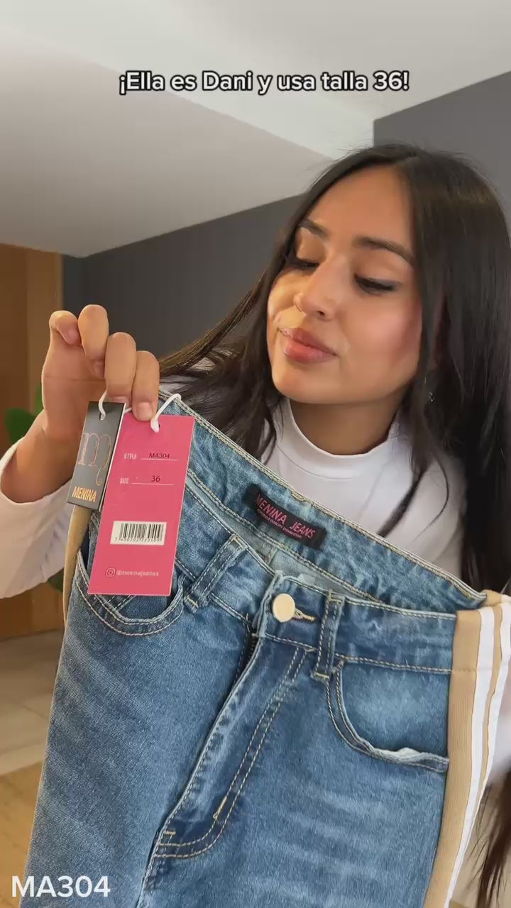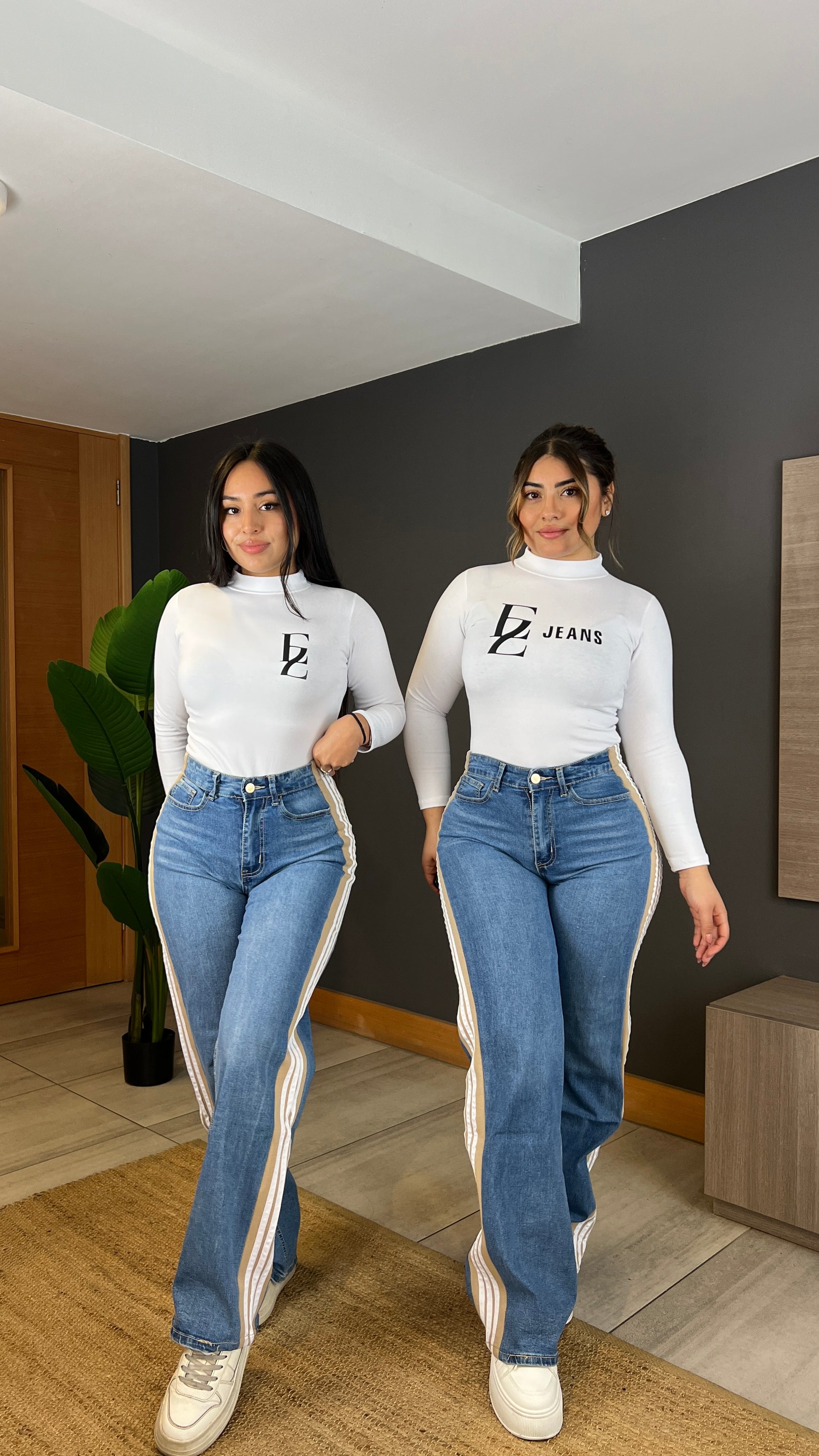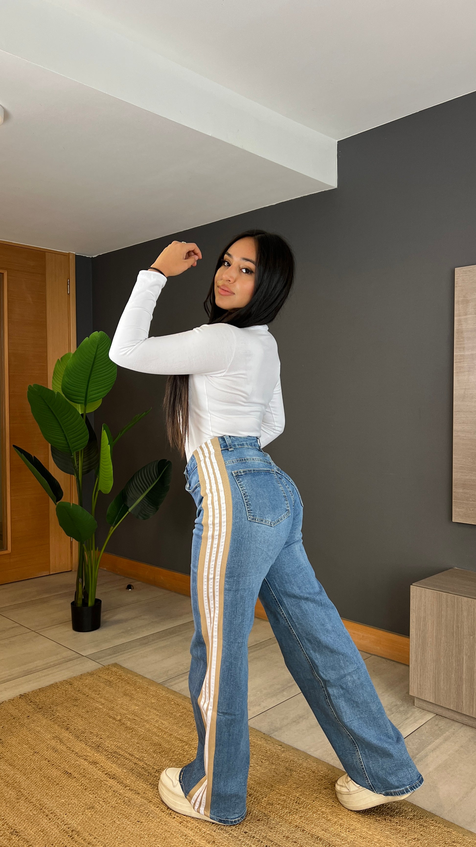 Modelo A304 (C5) |Jeans Wide Leg + Buzo Franja Beige | Menina