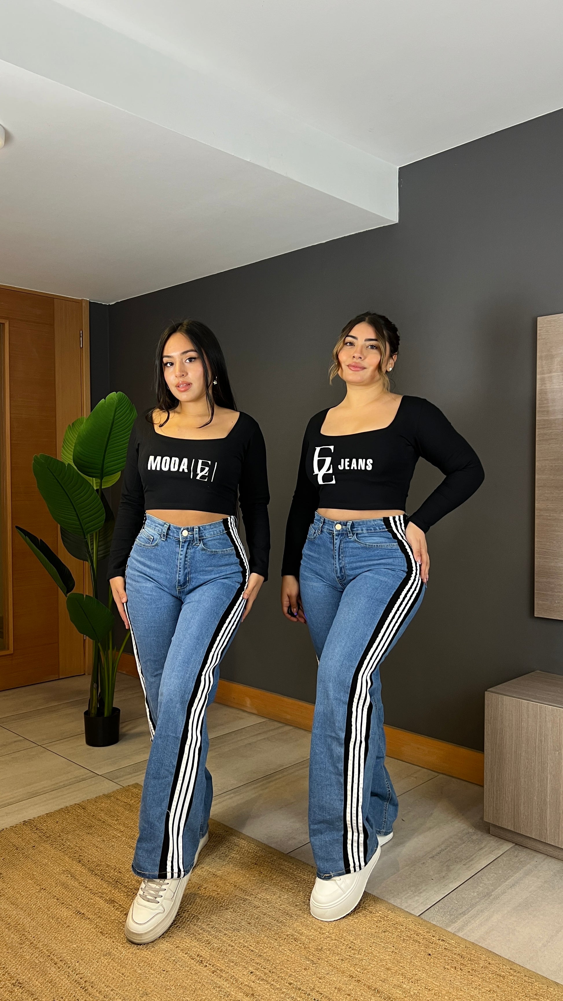 Modelo A304-2 (A7) |Jeans Wide Leg + Buzo Franja Negra | Menina