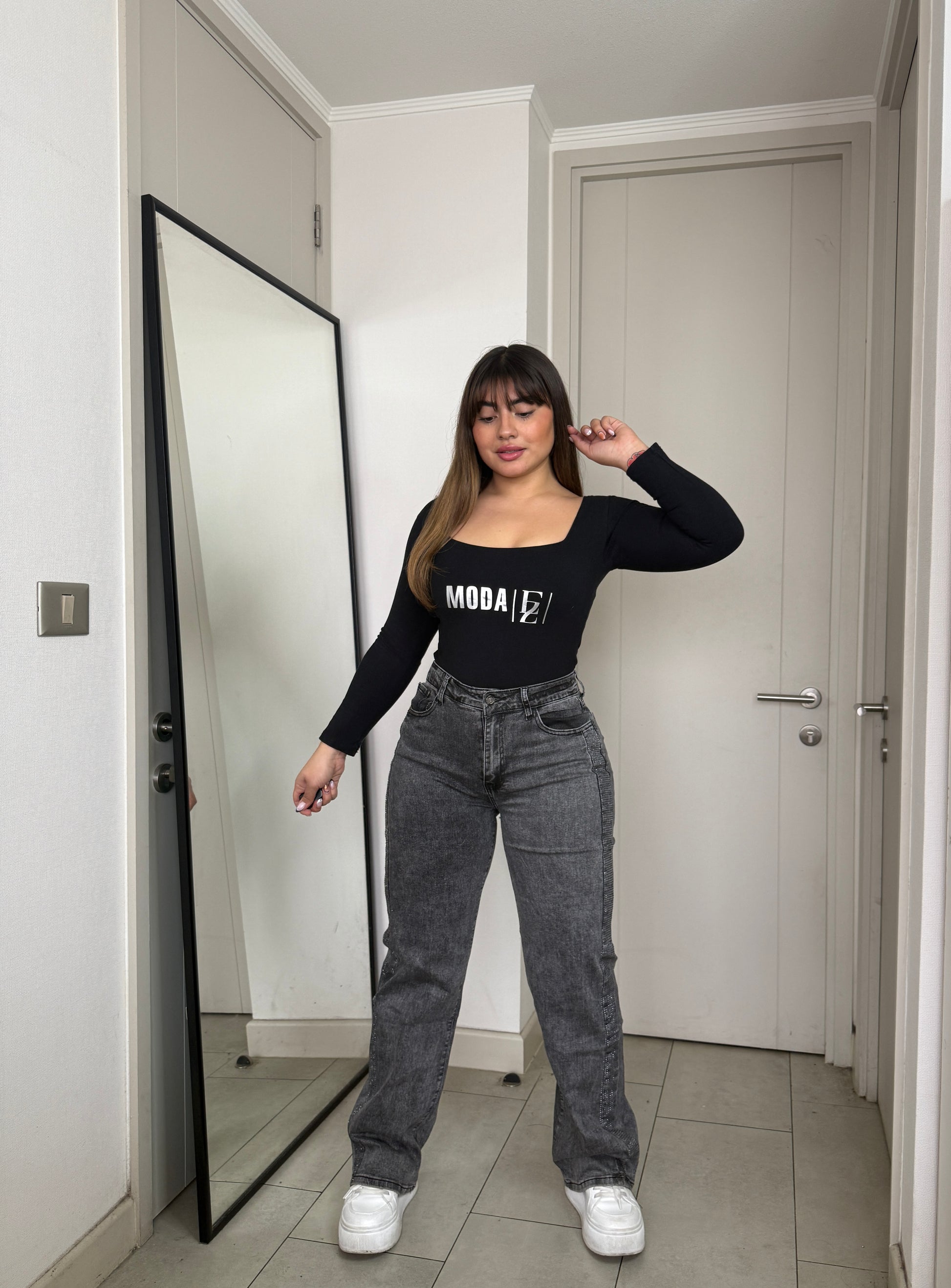 MB037-1 (C6) | Jeans Wide Leg Brillos Lados Gris | Menina