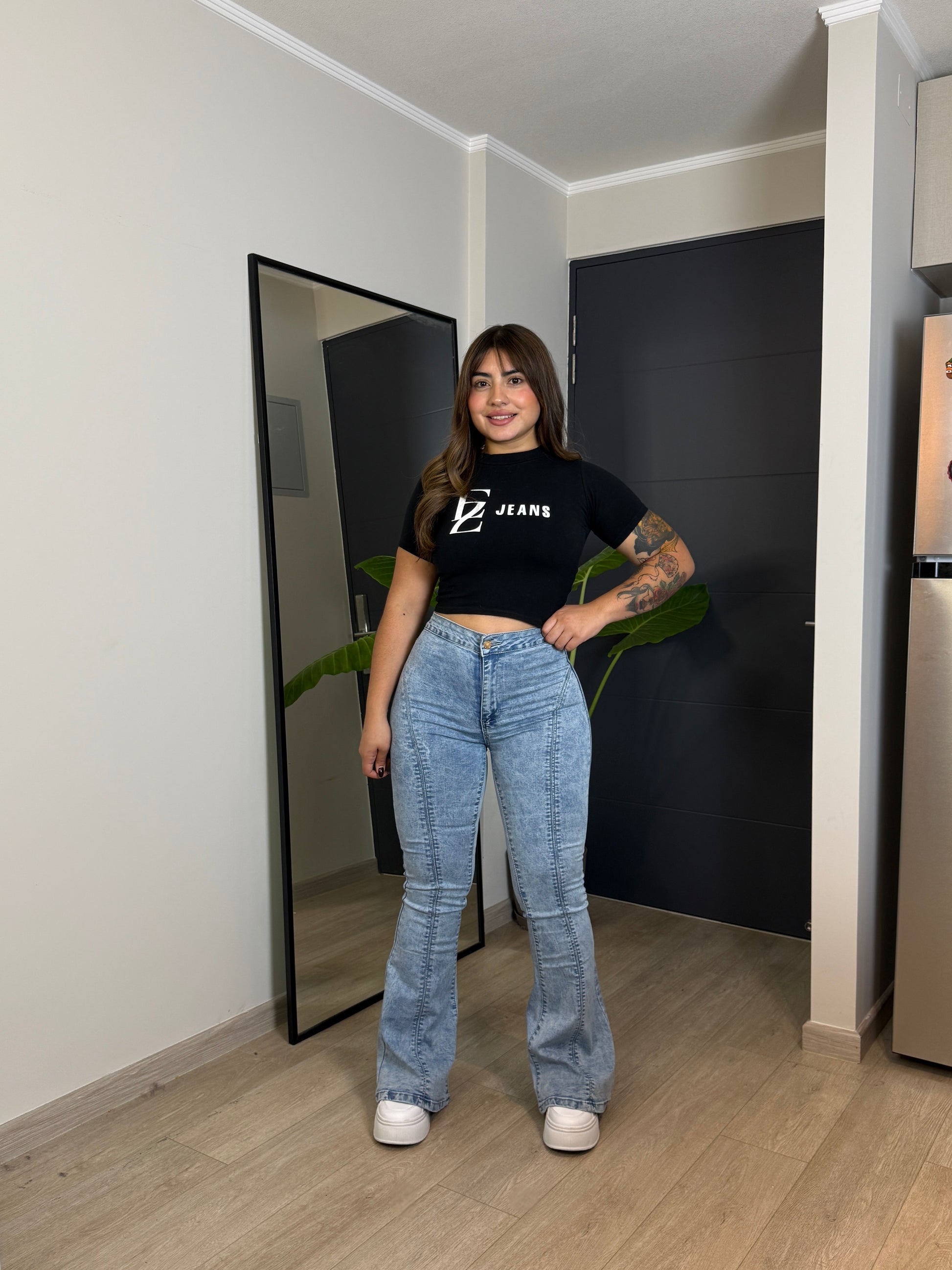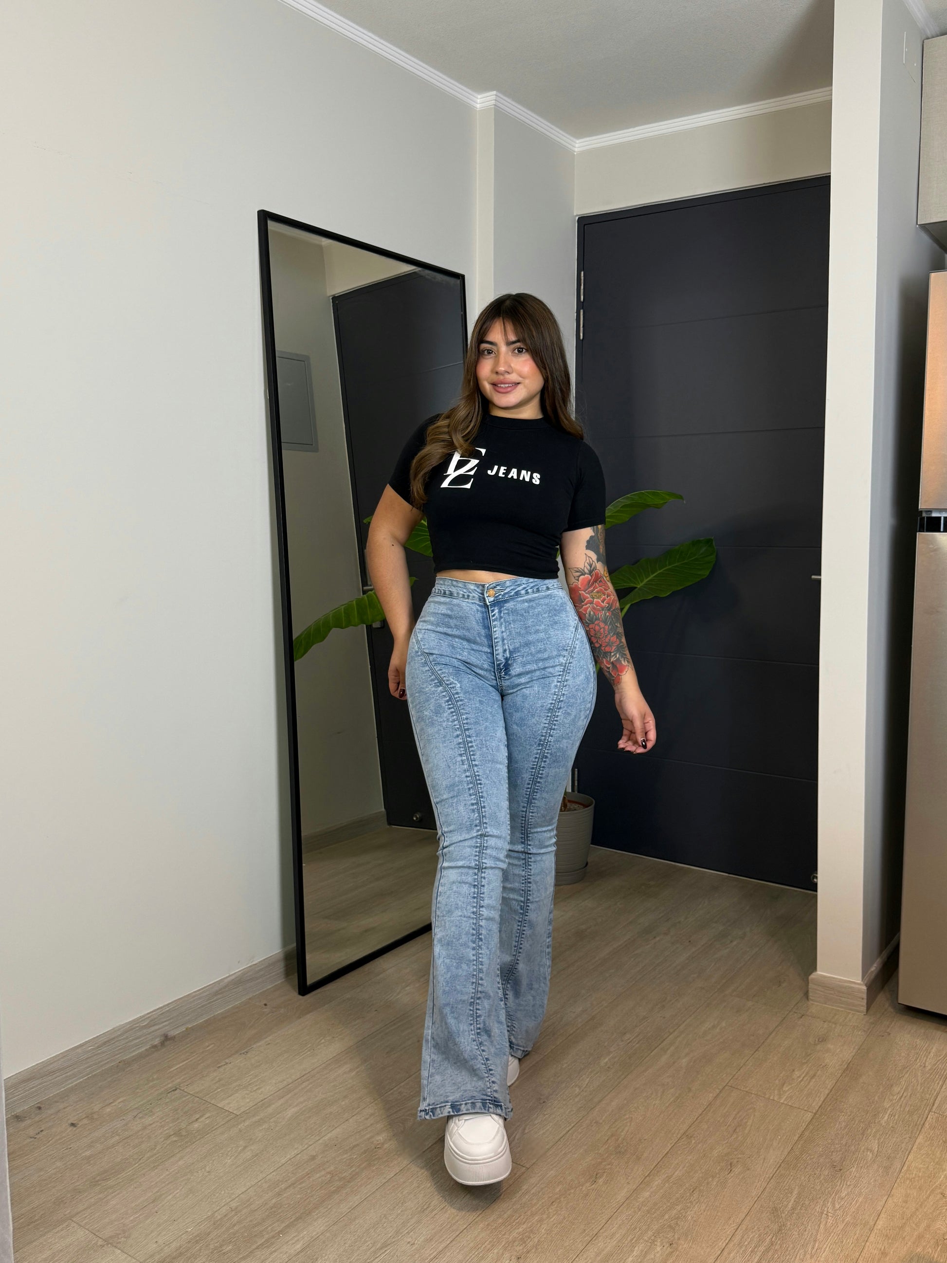 MB2063 (V1) | Flare Celeste Lineal Sin Bolsillos Adelante | Menina