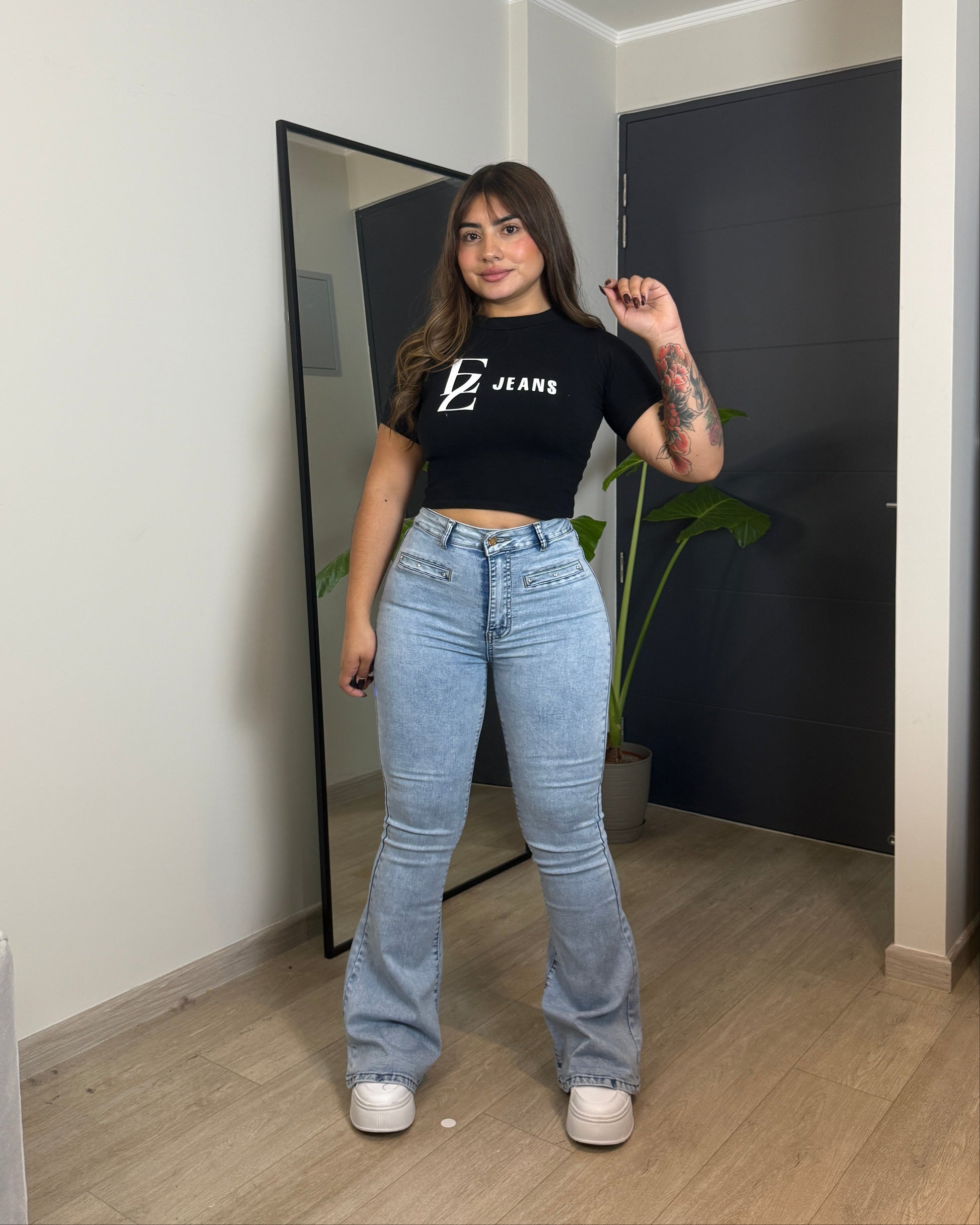 MB2065 (J5) | Flare Celeste Jaspeado Bolsillo Escondido | Menina