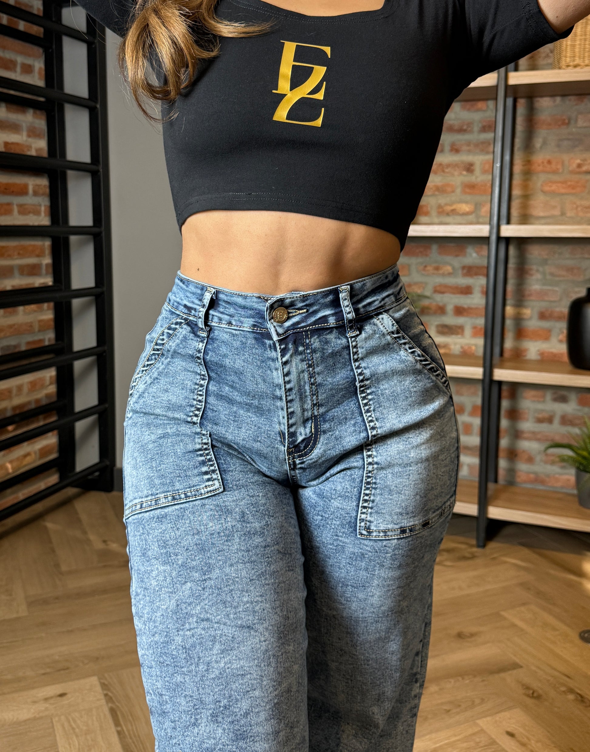 Jeans Palazzo, es tiro alto, elasticado y push up