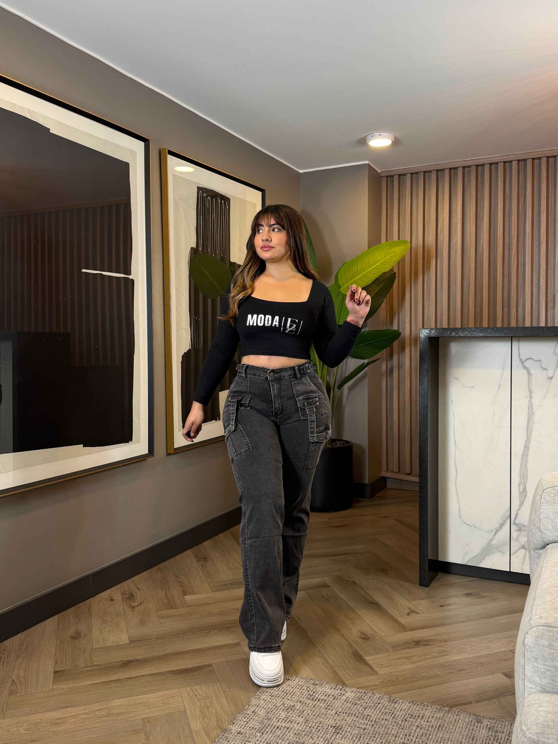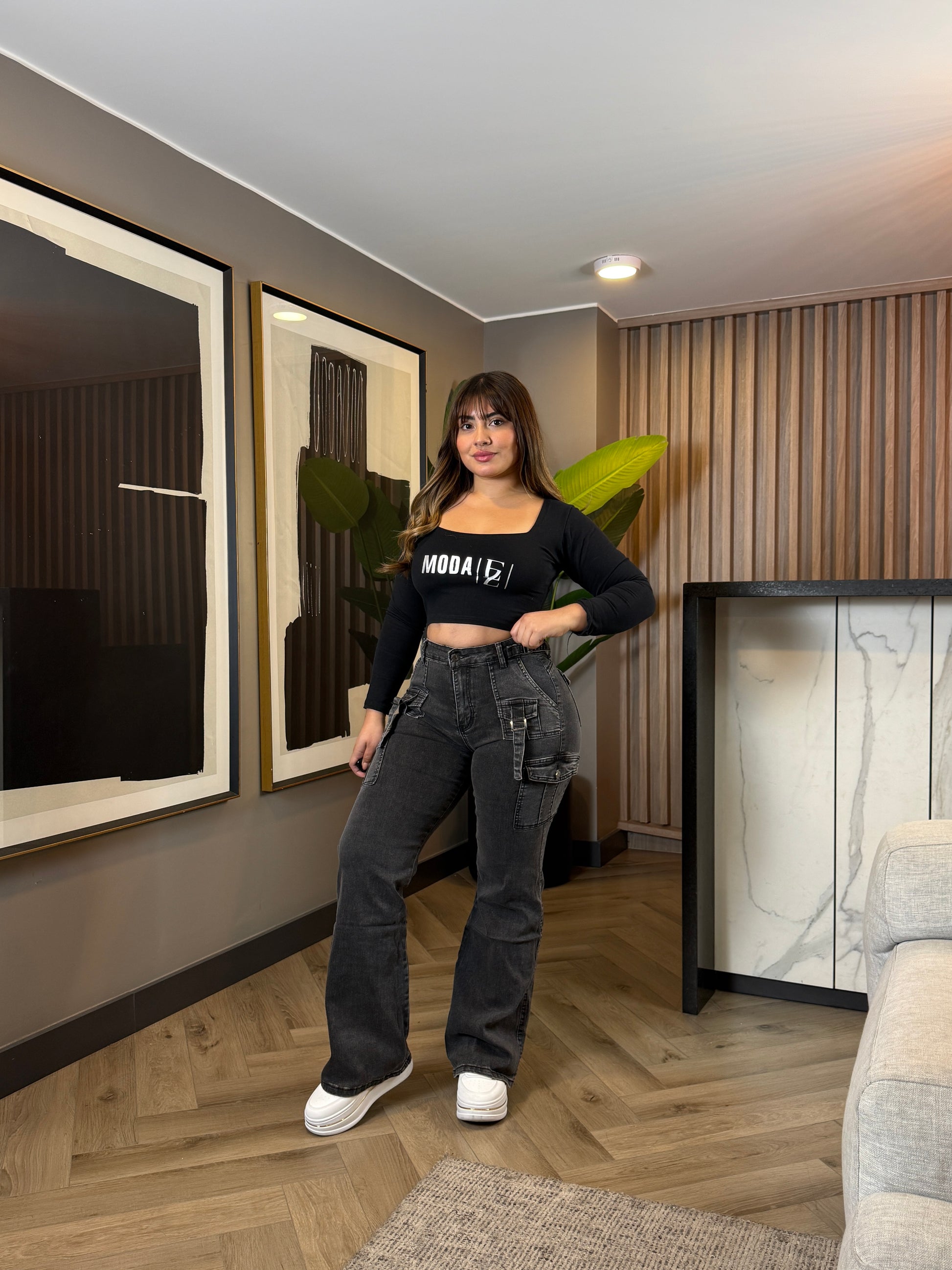 N0501-1 | Jeans Cargo Grafito Tapa Bolsiilo Adelante | Menina