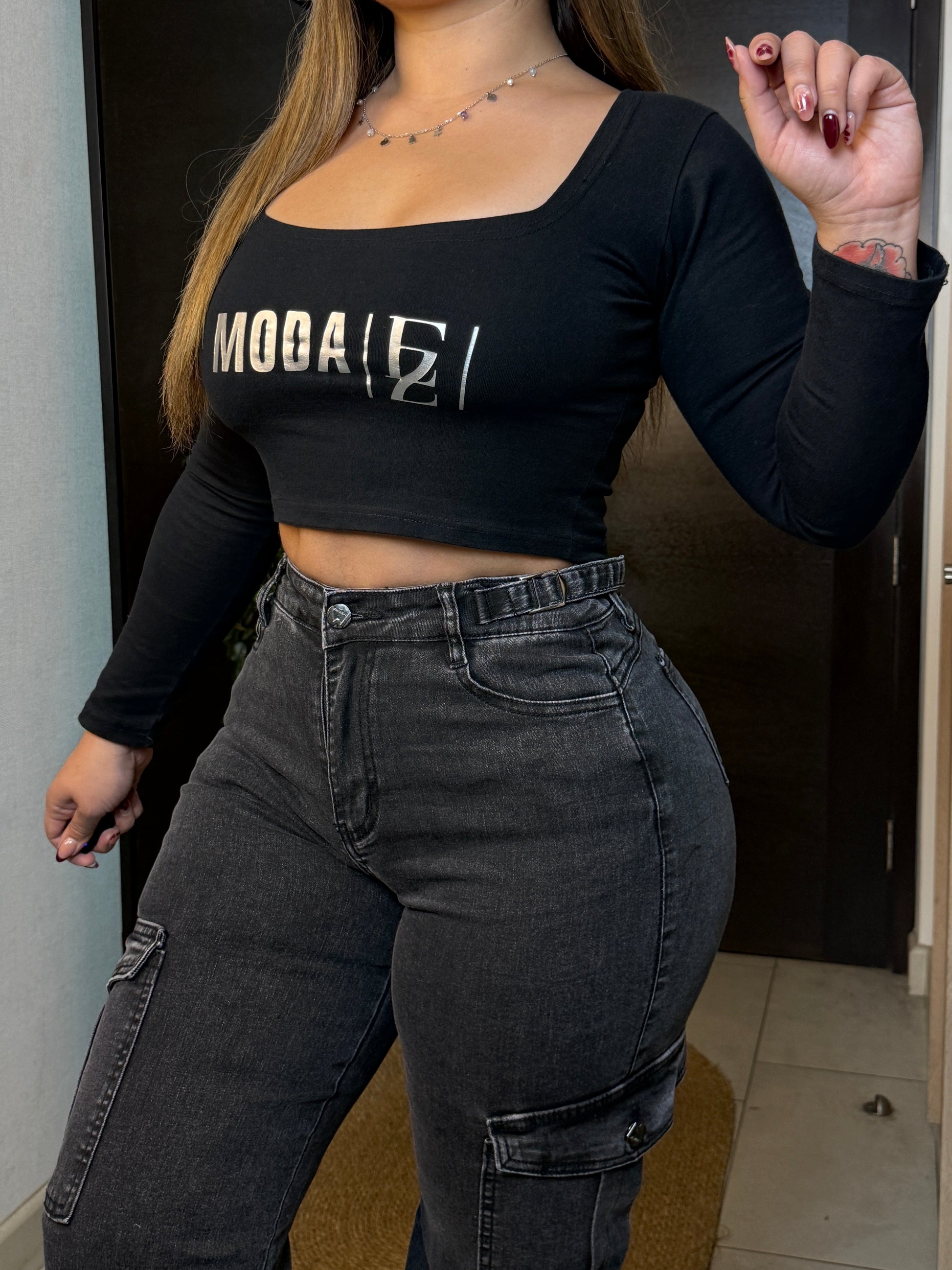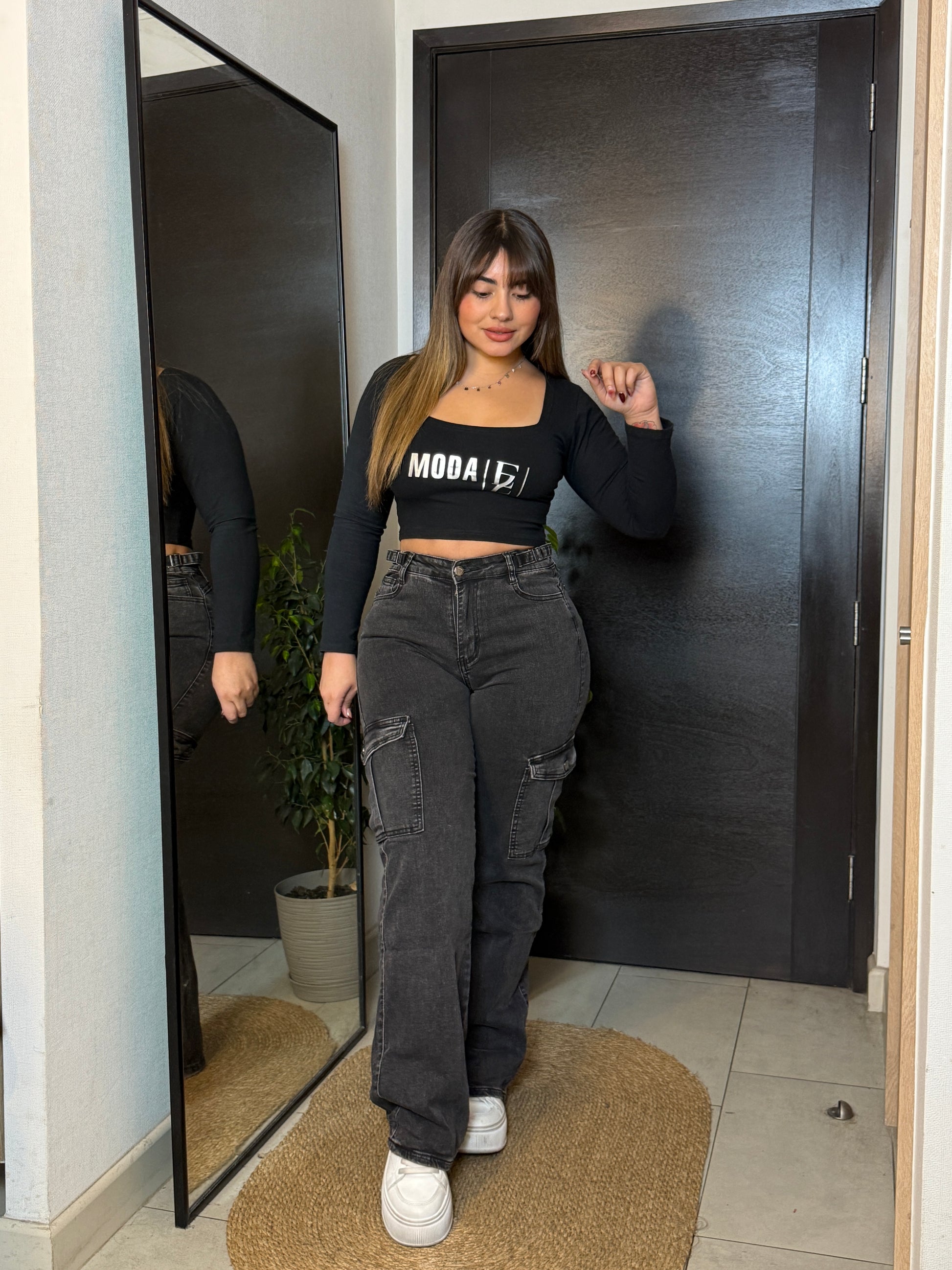 N0508-3 (S3) | Jeans Cargo Grafito | Menina
